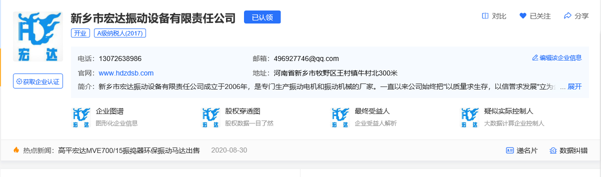 恭喜新鄉(xiāng)市宏達(dá)振動(dòng)設(shè)備有限責(zé)任公司獲得了“中級(jí)企業(yè)名片”認(rèn)證